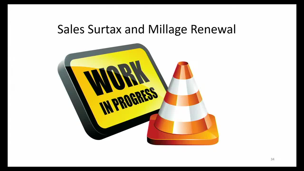 Board briefed on sales surtax and millage renewal; staff proposes extended term and broader uses