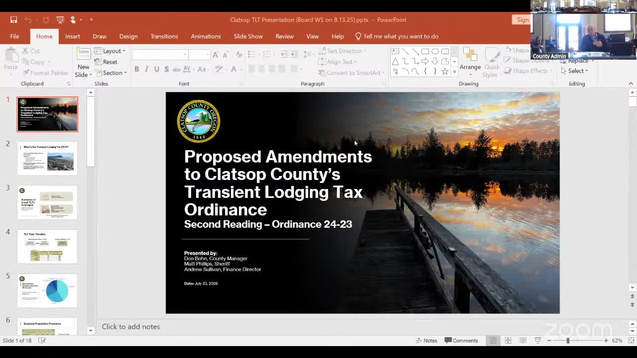 Clatsop County reviews 2025 legislative session and readies local transient‑lodging tax increase