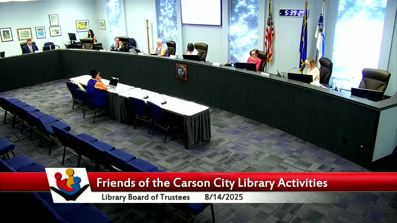 Friends of the Carson City Library describe Browser’s Corner operations and $65,000 donation; trustees discuss coordination