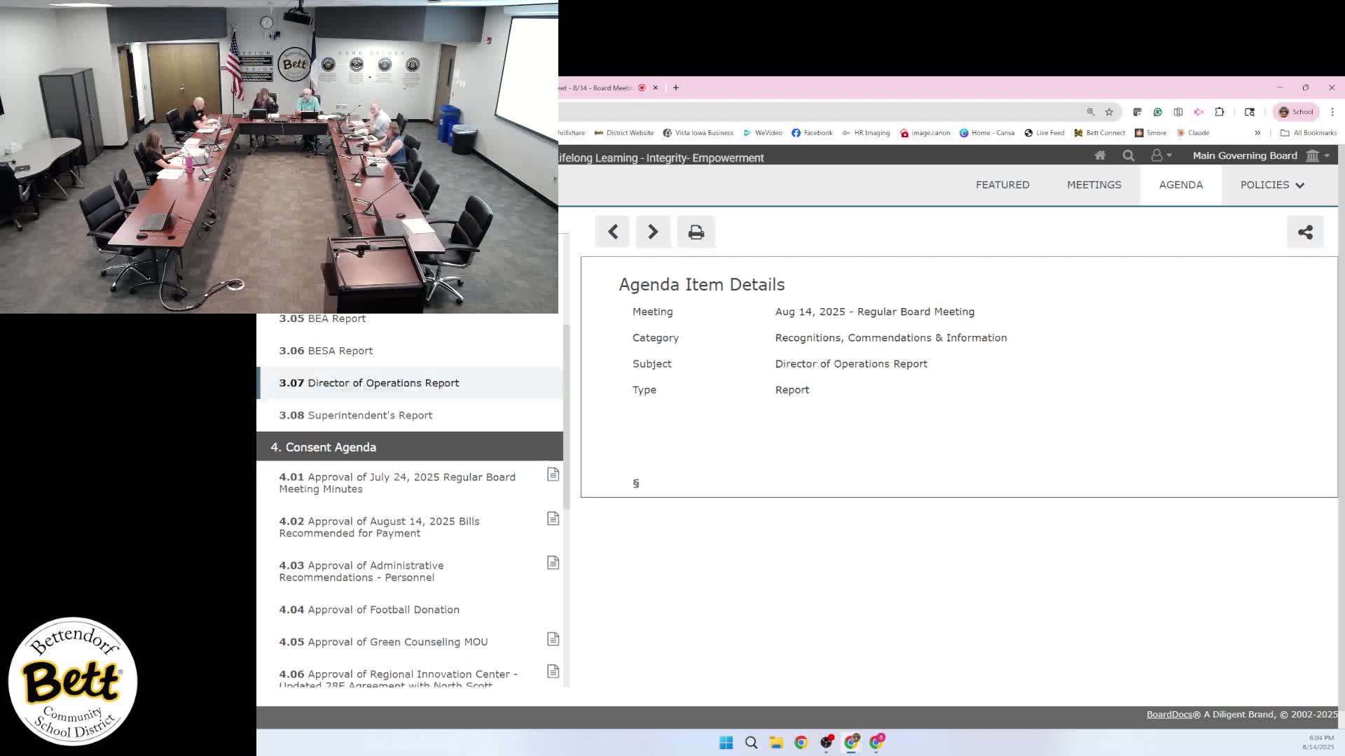 Bettendorf CSD: High‑school roofing delayed by rain; contractor to repair yard, concrete