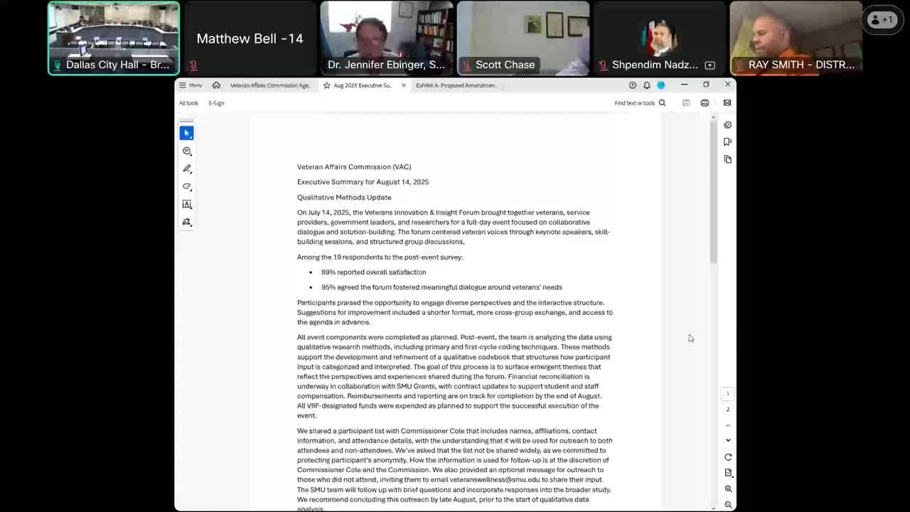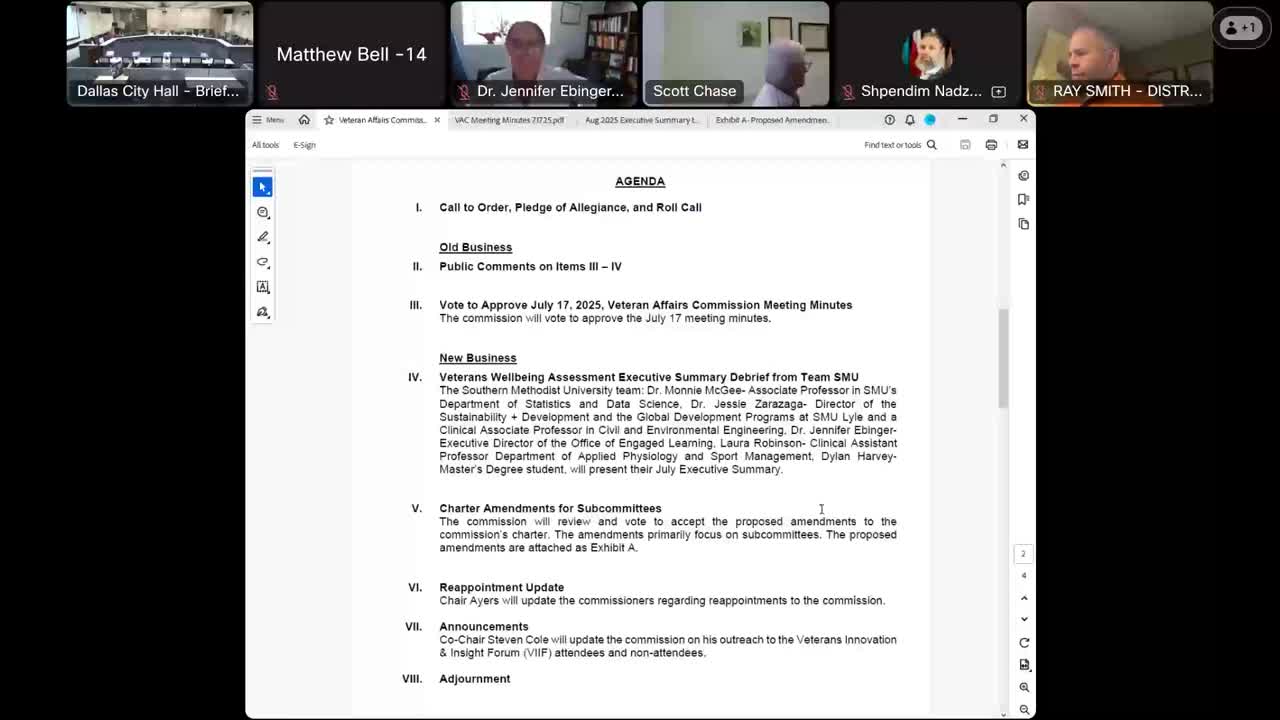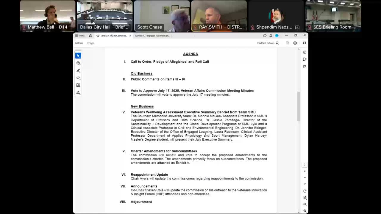 Votes at a glance: Dallas Veterans Affairs Commission (August meeting)