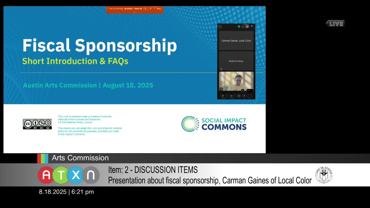 Fiscal sponsors describe models, costs and benefits to Arts Commission