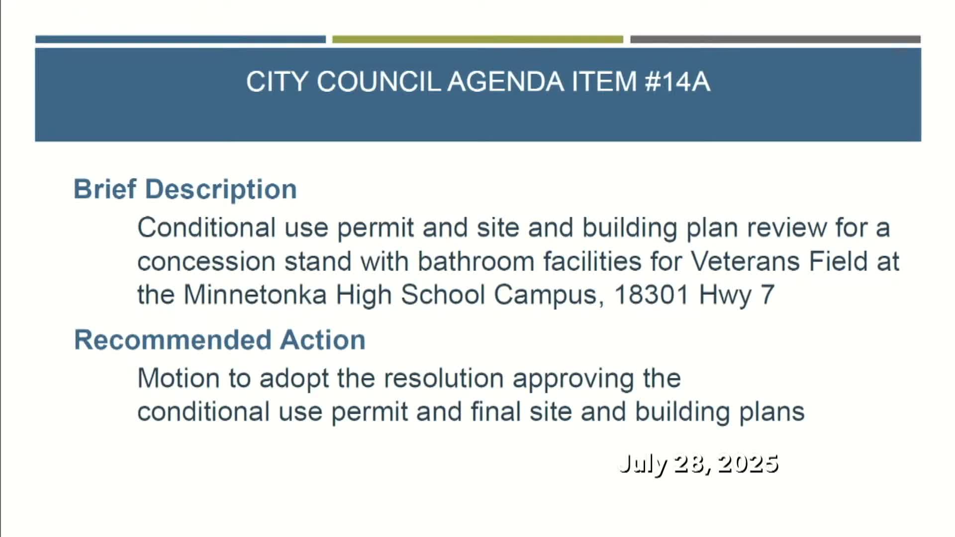 Council approves conditional use permit for Veterans Field concession and restrooms at Minnetonka High School