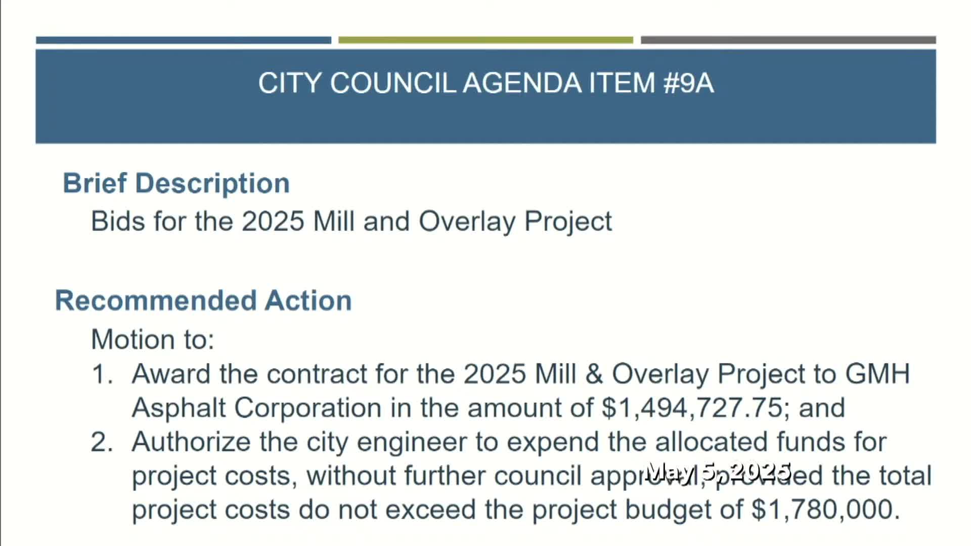 Council approves $1.49 million contract for 2025 mill and overlay project