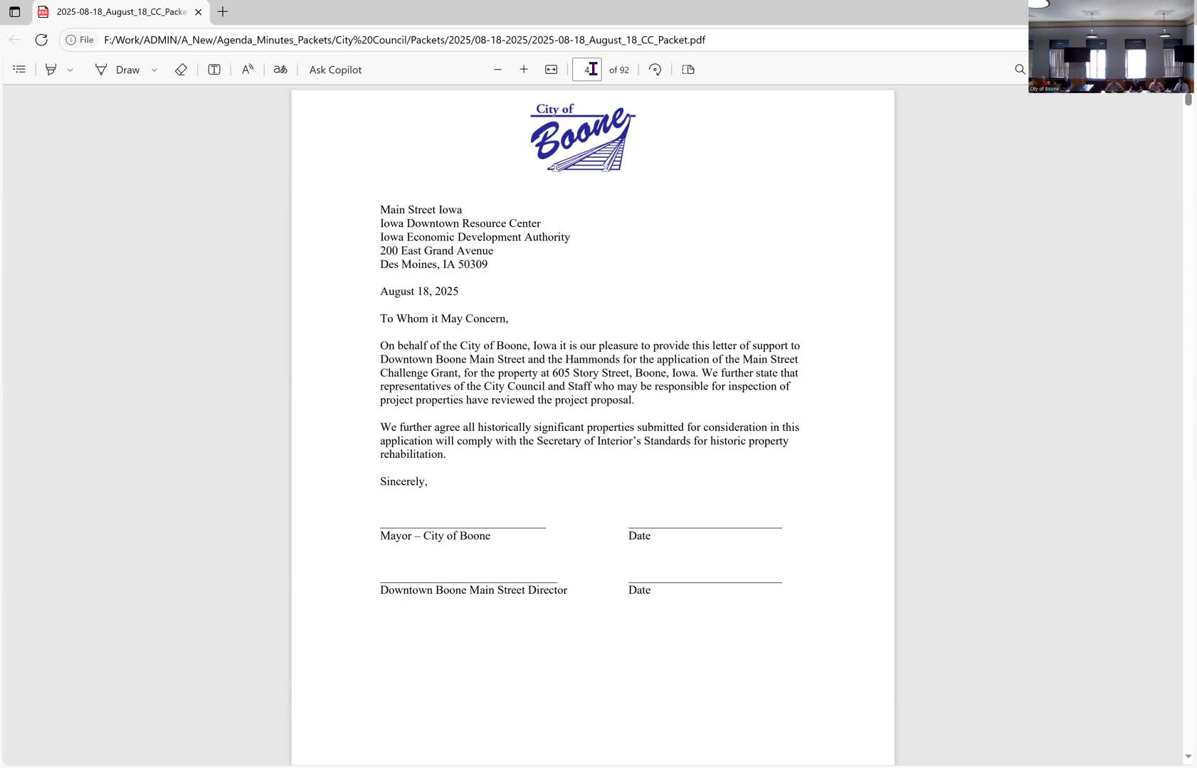 Council approves letter of support for Main Street challenge grant application for Dutch Oven bakery