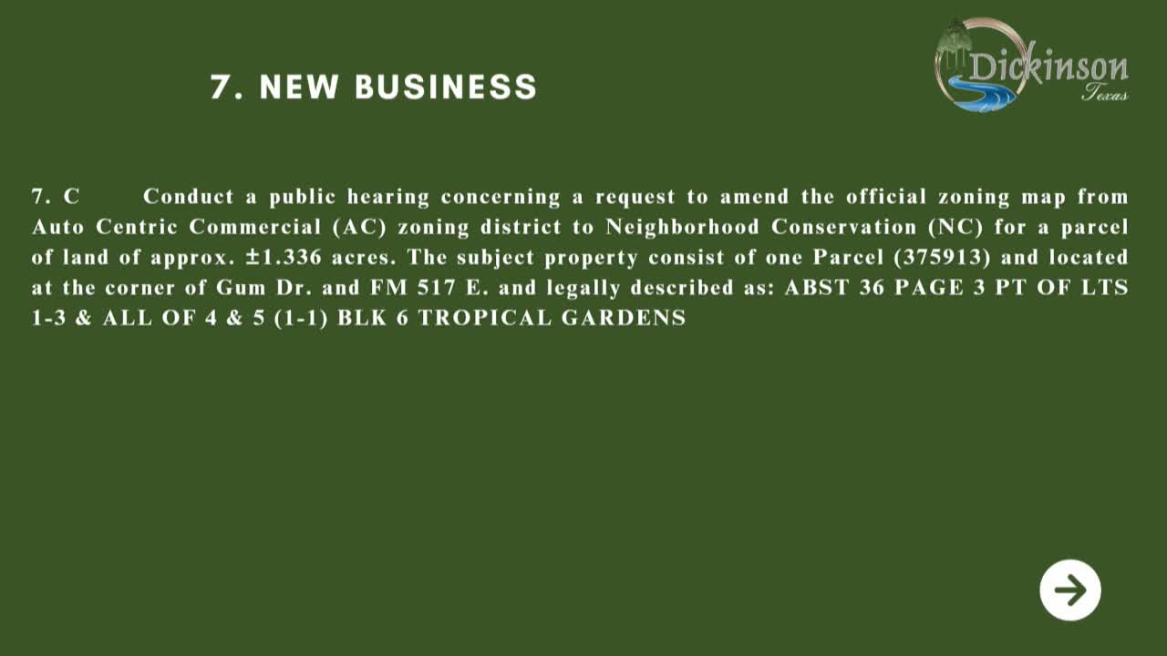 Planning and Zoning Commission recommends rezones for two Dickinson parcels after public hearings