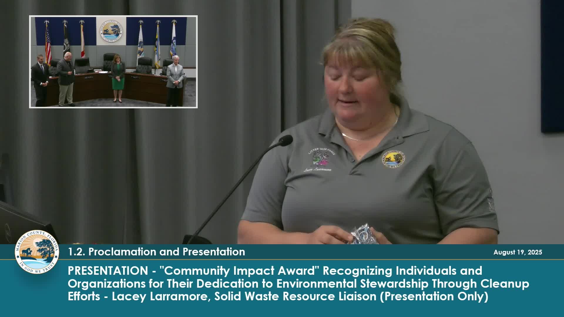 Commission recognizes Marion Oaks volunteer crew for litter cleanups and 49.78‑ton pickup