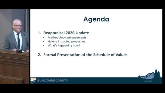County presents 2026 reappraisal schedule; staff outlines outreach, Helene damage accounting and improvements