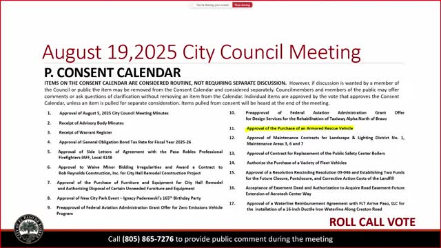 Paso Robles council approves armored rescue vehicle for police tactical response