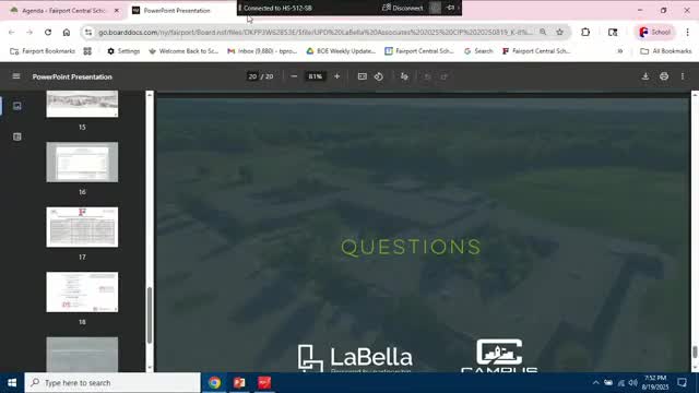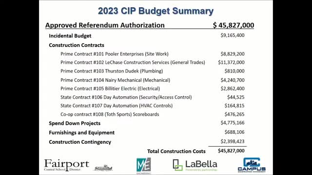 Board reviews $73.5 million 'Fairport for the Future' K–8 pre‑referendum; district projects zero additional tax impact