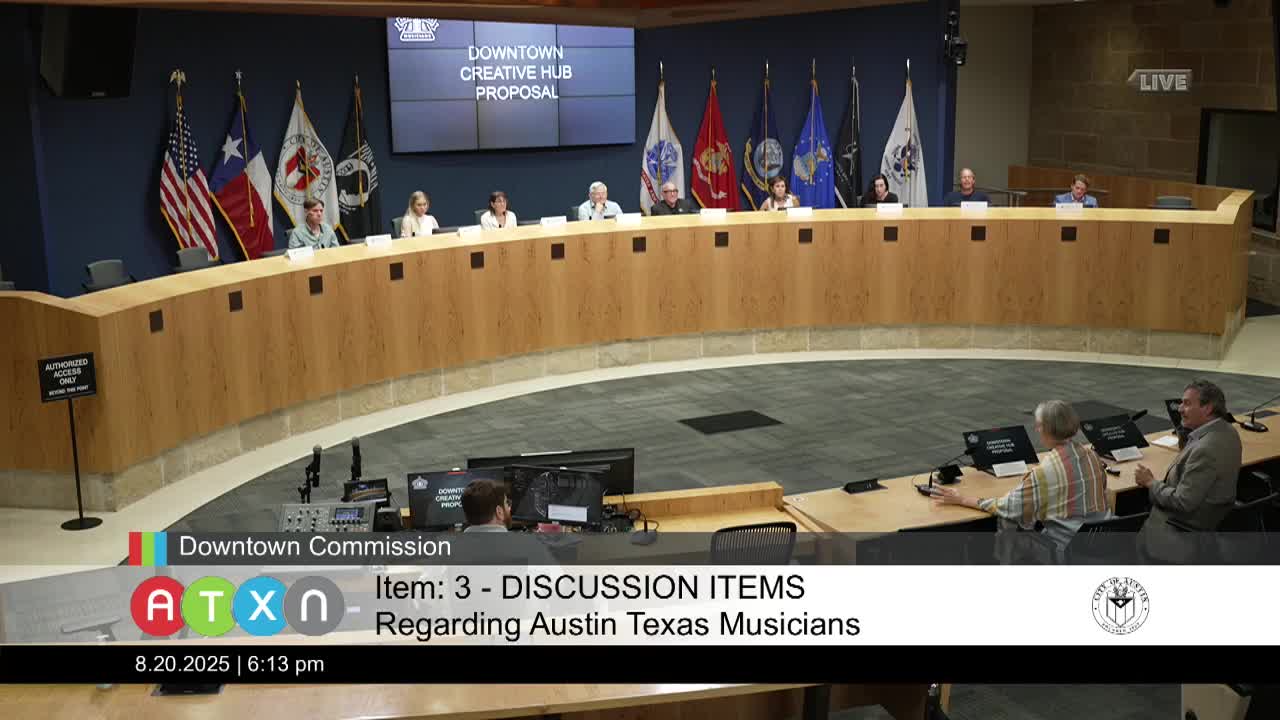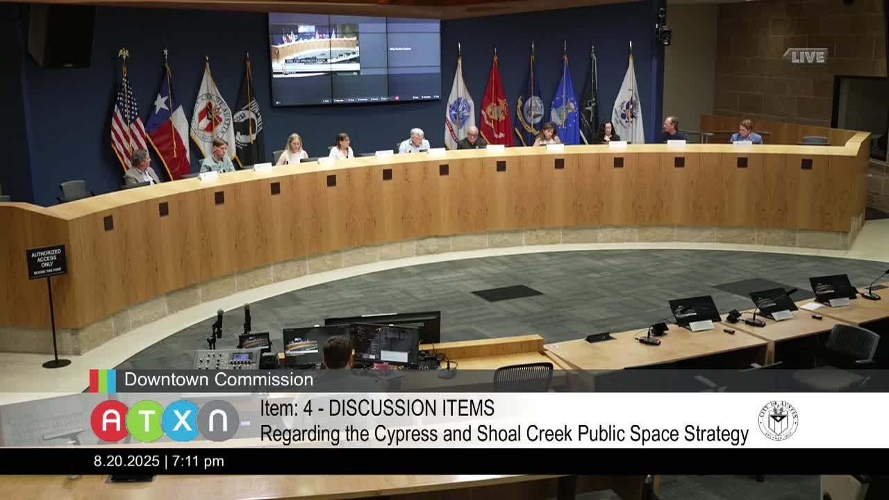Shoal Creek Conservancy updates commission on Cypress & Shoal Creek public-space plan; advocates trestle rehabilitation and Market Plaza alternatives