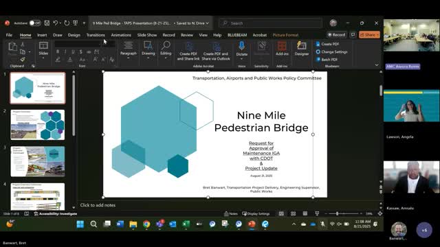 Nine Mile pedestrian bridge reaches final design; committee advances CDOT maintenance IGA to council