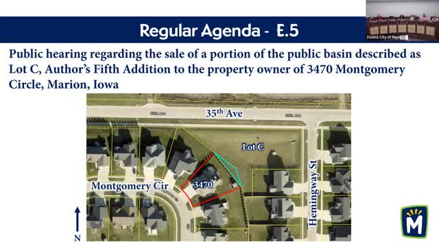 Council approves sale of 0.025-acre basin strip to adjacent homeowner, records plat