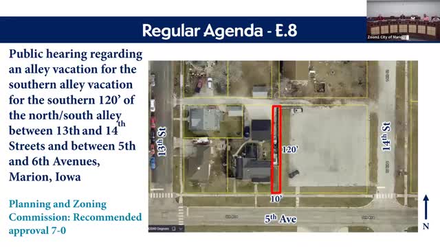 Marion council vacates southern 120 feet of alley between 13th and 14th; school district to be offered half