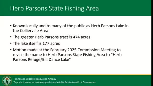 Commission refers naming of Herb Parsons site lake as 'Bill Dance Lake' with family support