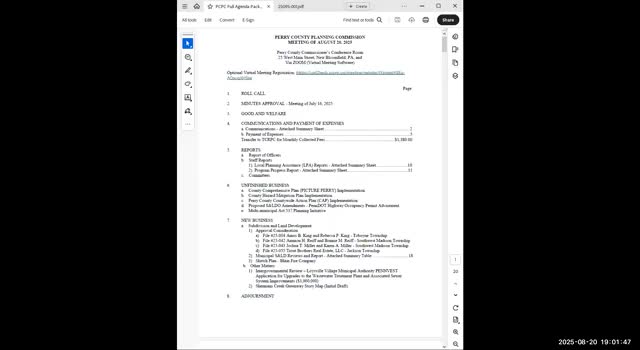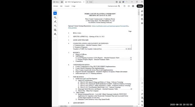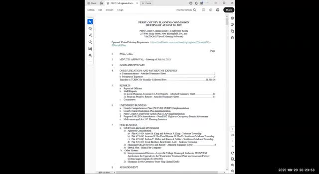 Perry County planning commission approves multiple land‑development plans, sets conditions for bakery relocation and lot changes