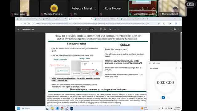 Clark County Council approves July 13 minutes; holds two executive sessions on pending litigation with no after action