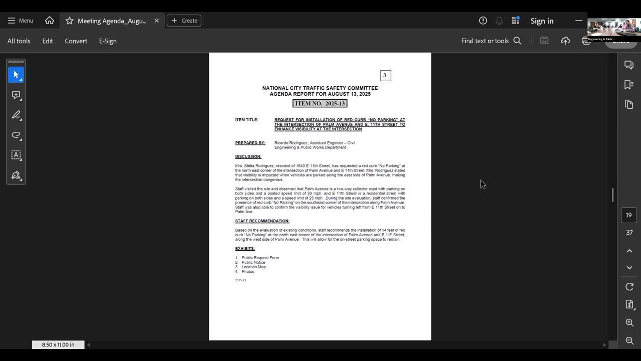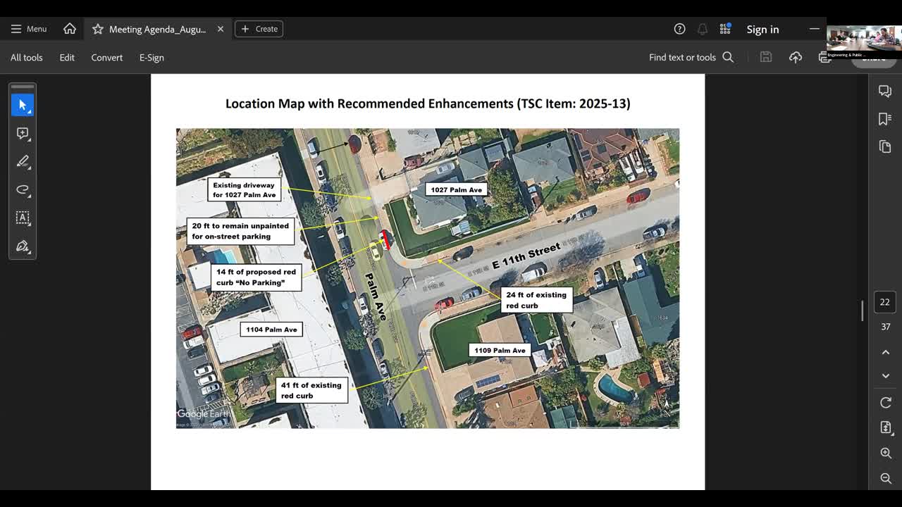 Staff recommends 14 feet of red curb at Palm Avenue and East 11th to improve intersection visibility