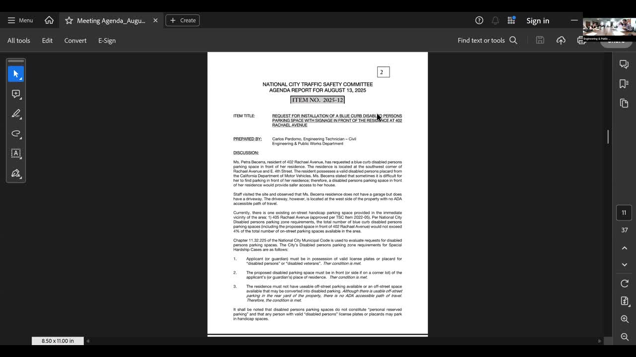 Commission approves request for disabled parking space at Rachel Avenue, forwards to council