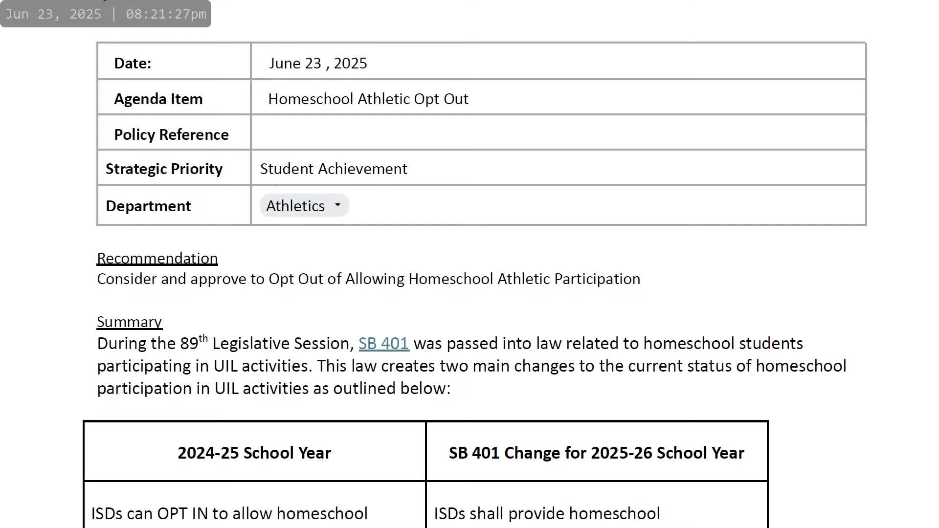 Board discusses House Bill 547 and option to ‘opt out’ of homeschool extracurricular participation