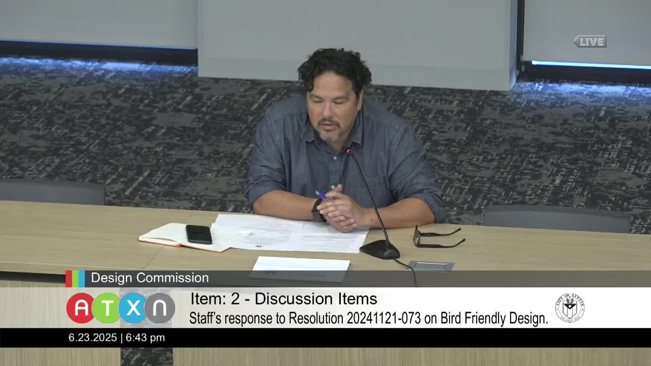 City staff brief Design Commission on bird‑friendly building measures after council resolution