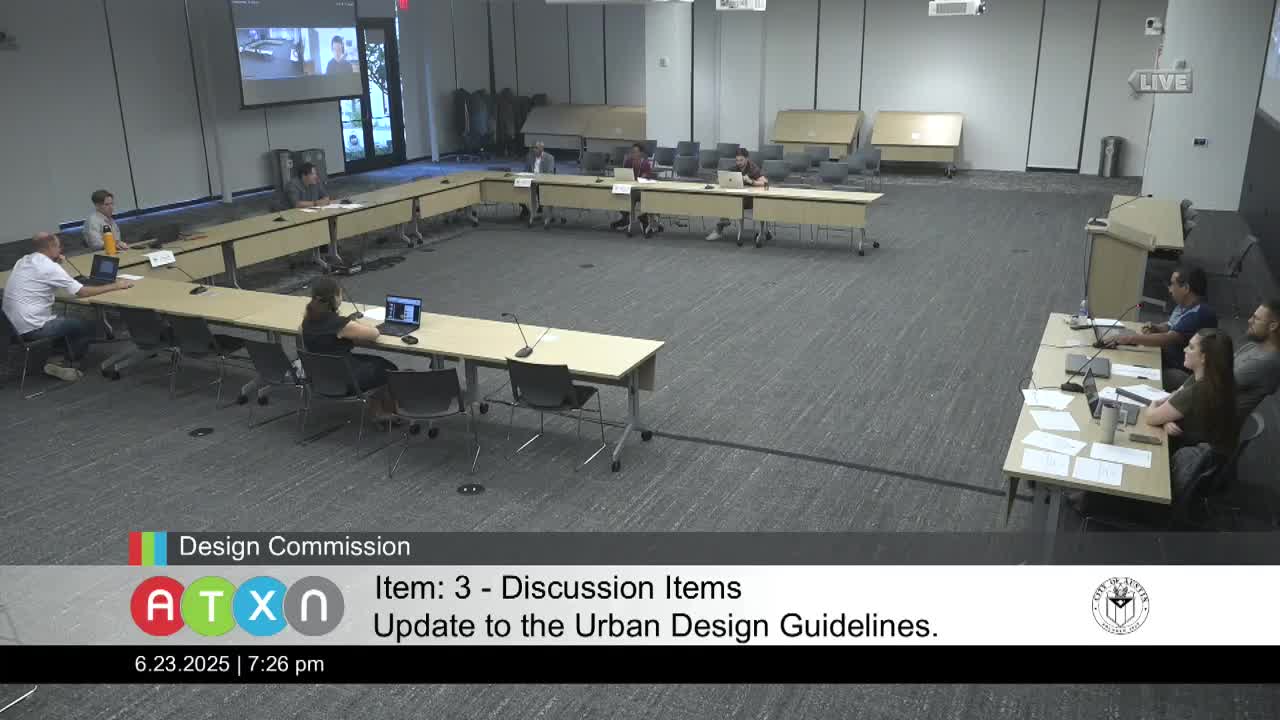 Design Commission reviews draft urban design guidelines; staff seeks format direction and working‑group input