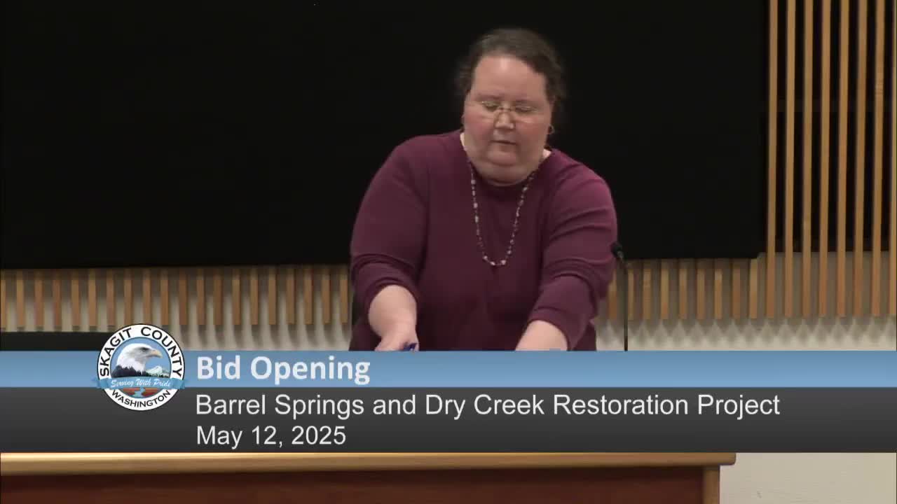 Skagit County opens bids for Barrel Springs and Dry Creek restoration; Harkness Heavy Construction apparent low bidder