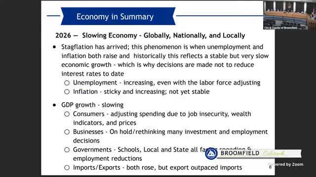 Broomfield staff preview 2026 budget: officials warn of 6–8M drop in property tax base, endorse conservative spending and infrastructure focus