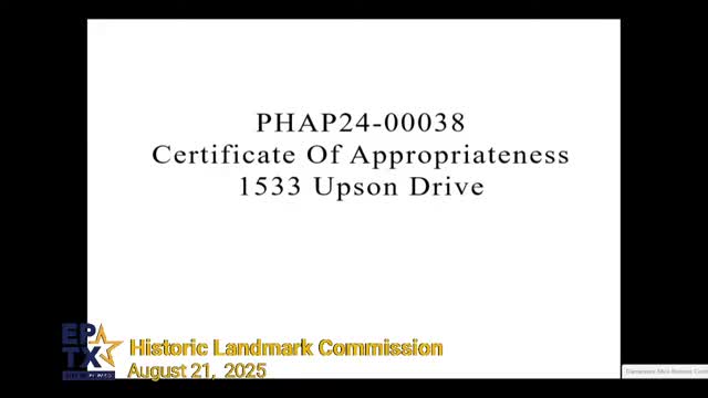Commission allows accessory structure permits at 1533 Upson Drive only after landscaping compliance
