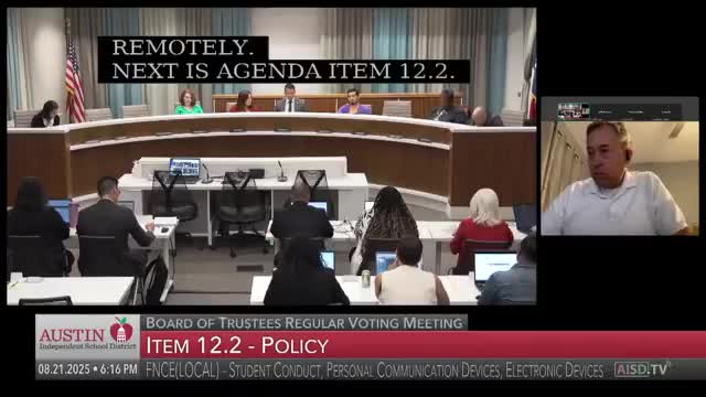 Austin ISD trustees approve device and conduct policies, cybersecurity contract, governance evaluation; deny one transfer appeal