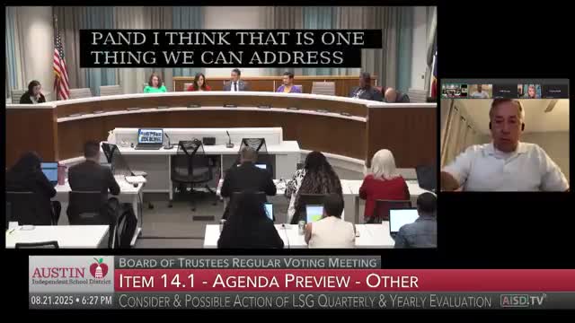 Board coach: Austin ISD sustained 'meets focus' under Lone Star governance; board approves 74‑point quarterly tracker