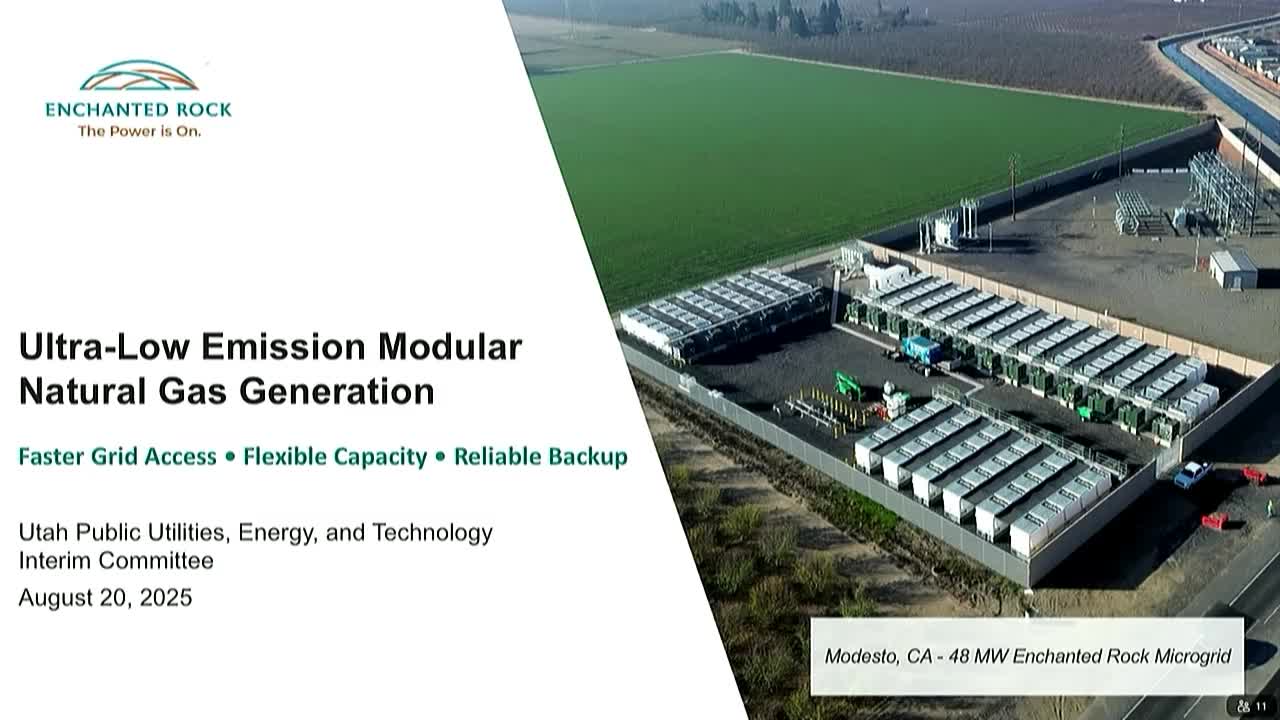 Enchanted Rock proposes modular natural‑gas generation for on‑site reliability; company says technology cuts emissions versus diesel backup