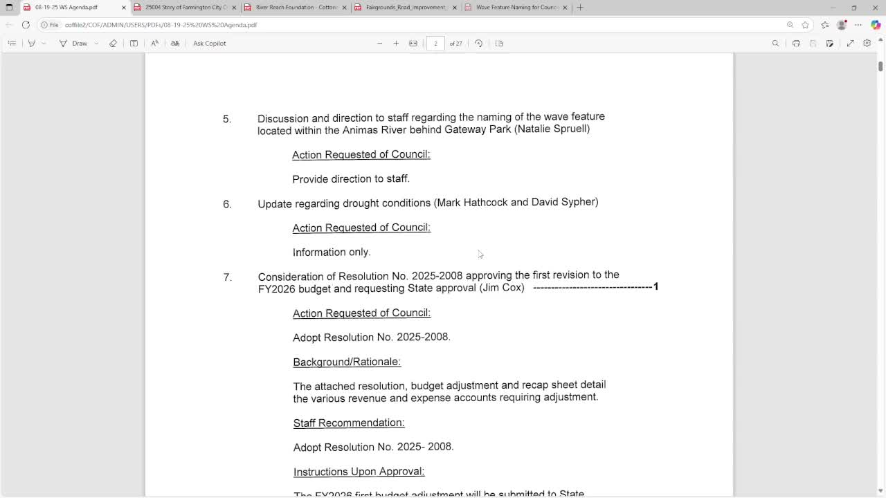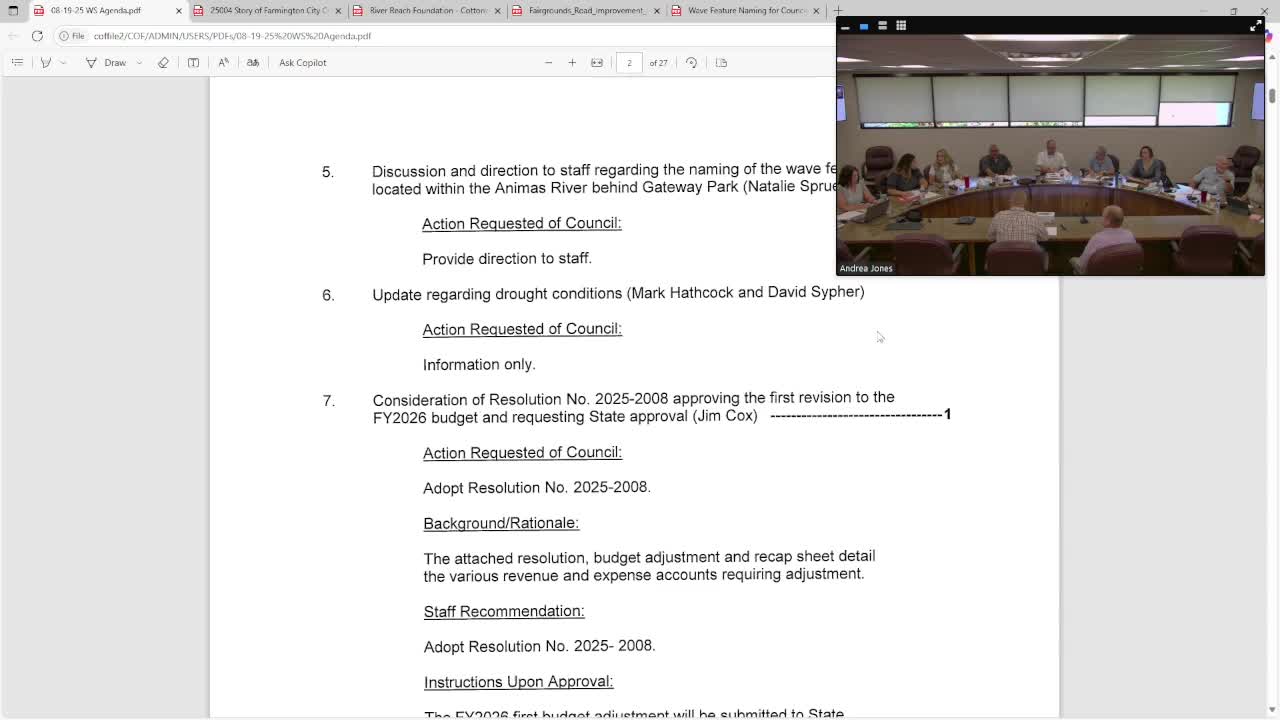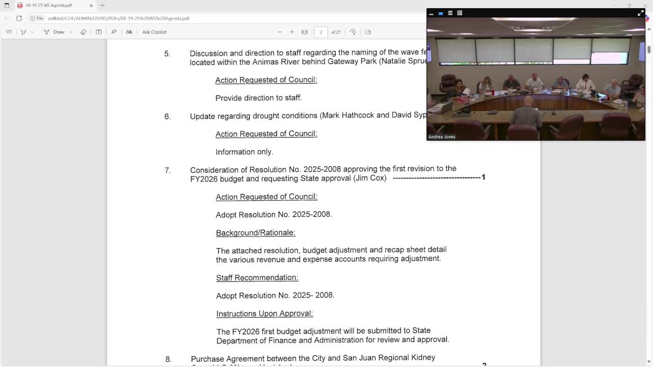 Council adopts first FY2026 budget revision, approves transfer to capital projects and grant updates