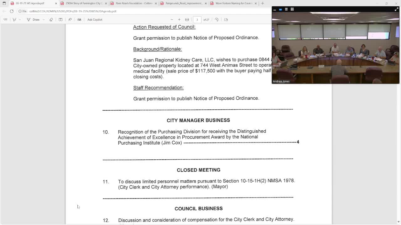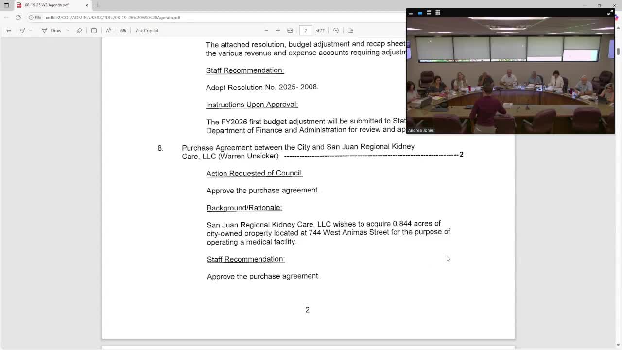 Council approves sale agreement for city lot at 744 W. Animas to San Juan Regional Kidney Care; ordinance publication follows