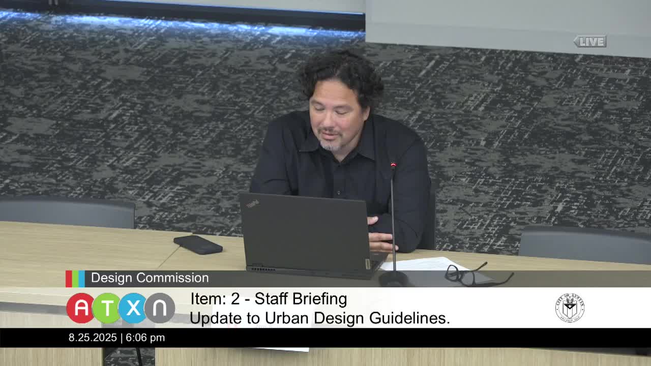 City staff presents draft urban design guideline layouts; commissioners give direction on graphics, timeline