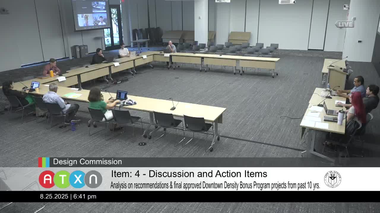 Commission reviews downtown density-bonus project at 305 W. Fifth; members flag ground-floor activation, transparency and art