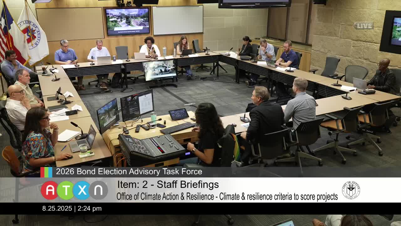 Austin staff outline climate-focused scoring for 2026 bond projects; task force debates scope and timeline
