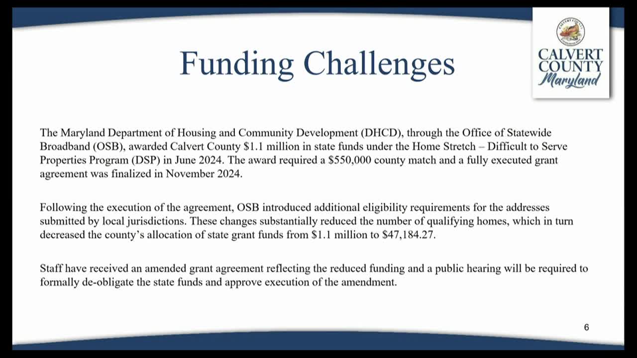 County moves to de‑obligate most of state DSP broadband grant; retains county match to finish build‑out