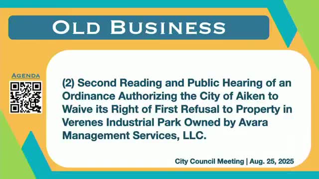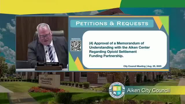 Council approves opioid‑settlement MOU to fund Aiken Center partnership and public‑safety positions