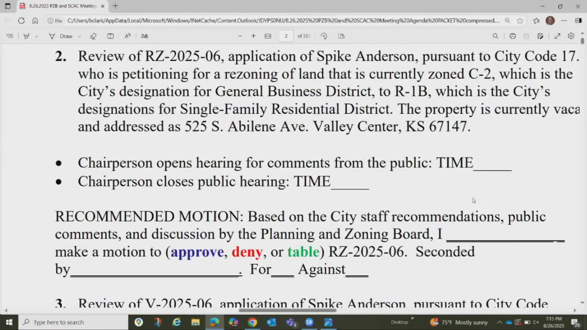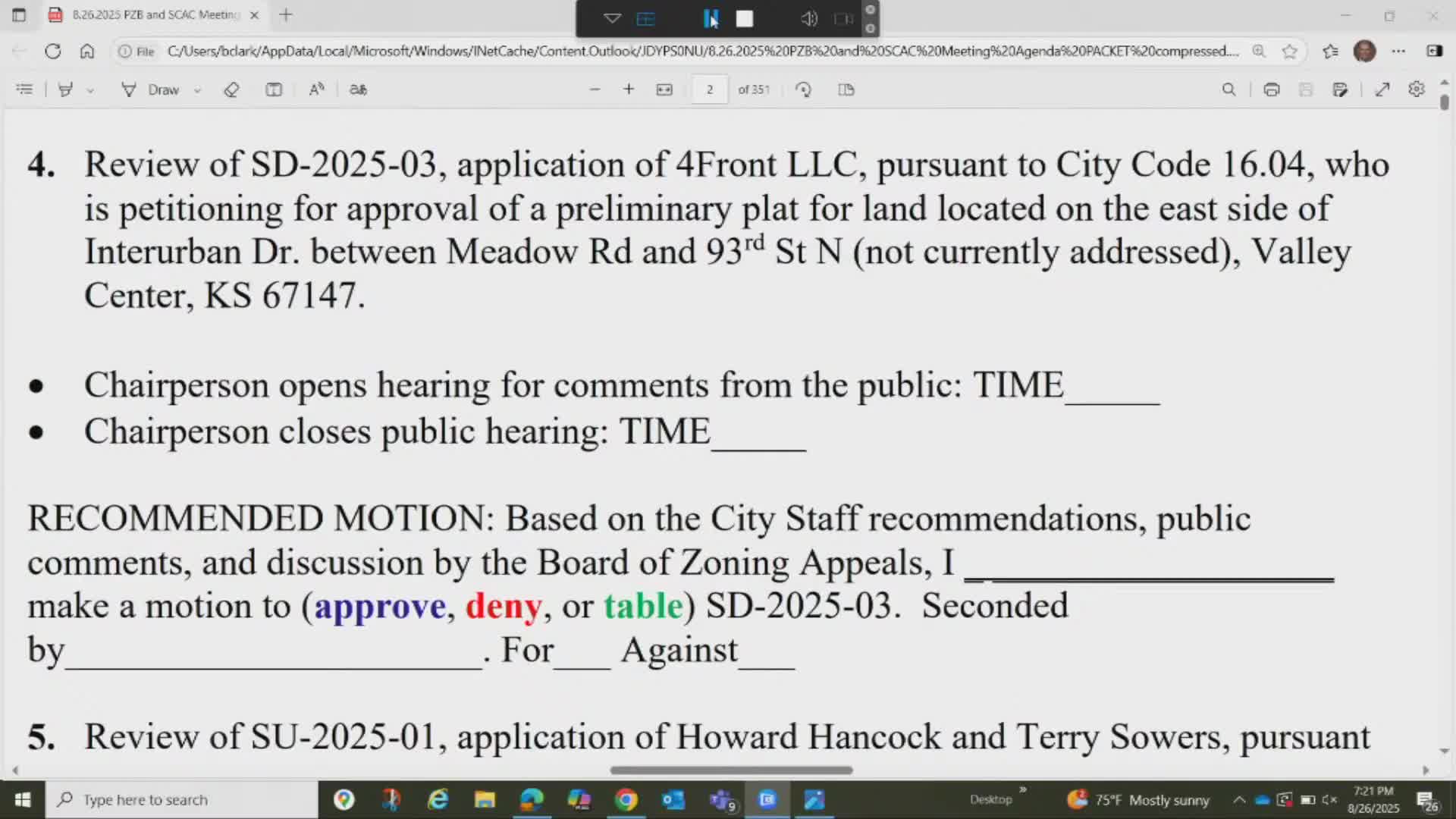 Board recommends special‑use permit for pallet recycling business with quarterly fire inspections and compliance conditions