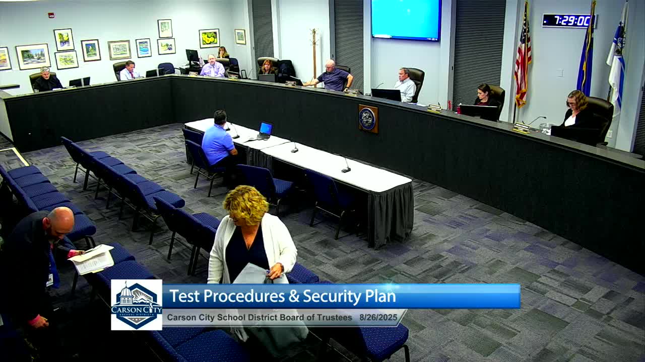 Board adopts district test procedures and security plan for 2025-26; state test participation rules emphasized