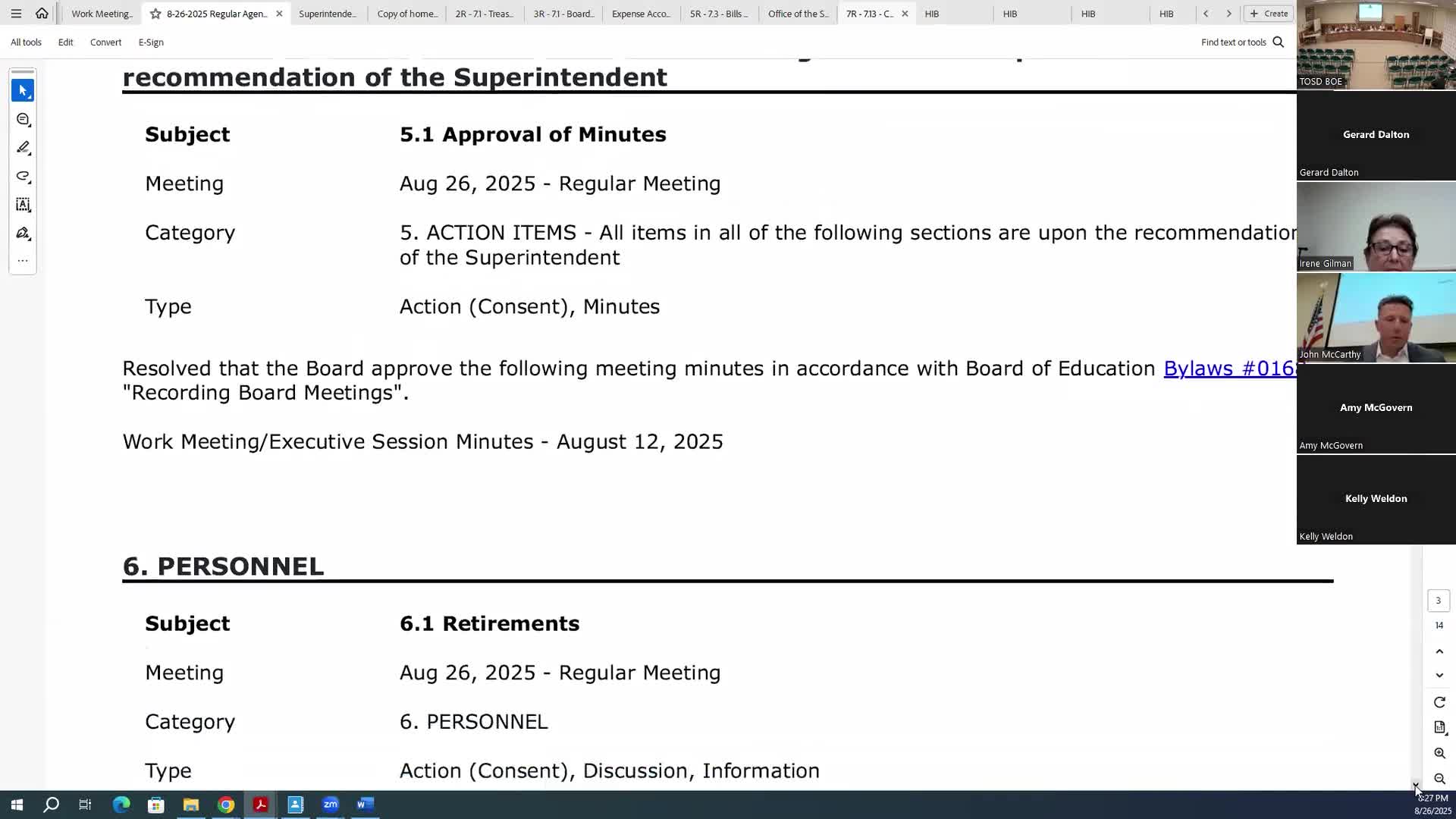 Board approves minutes, personnel, financial and instruction consent items