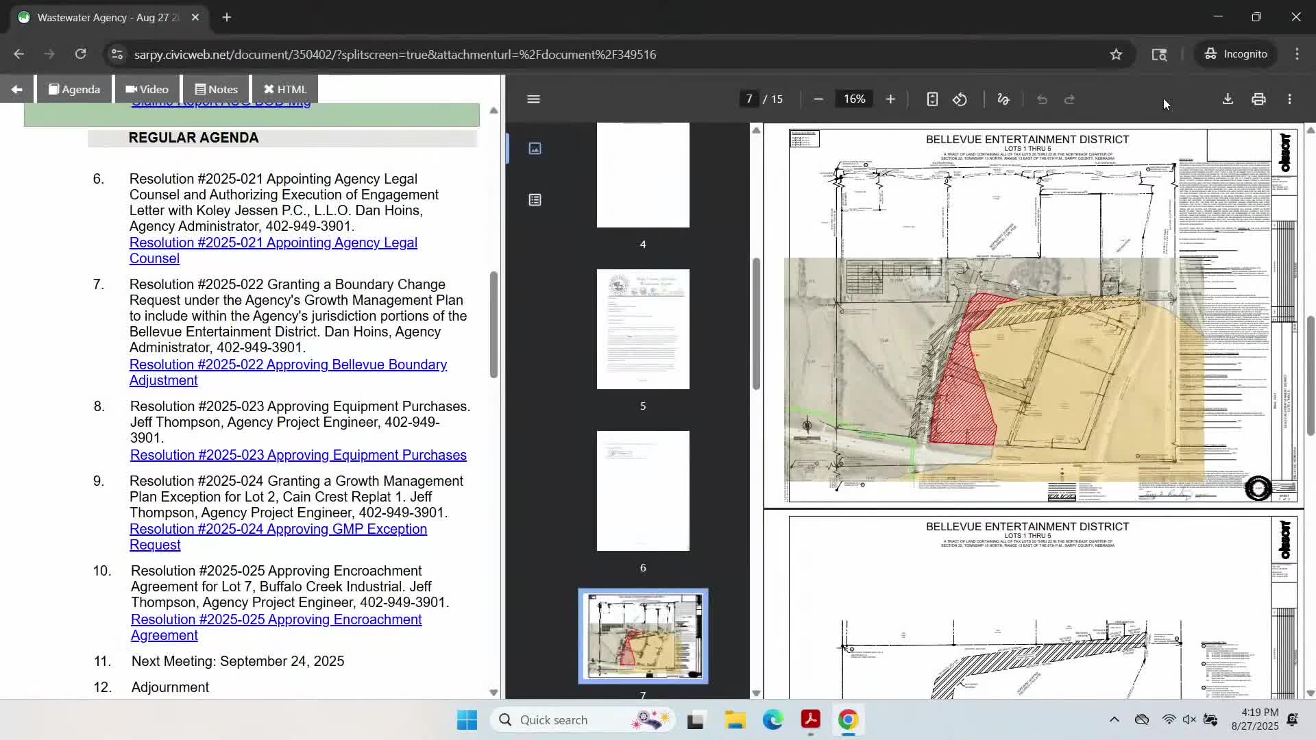 Agency board approves legal counsel contract, boundary change, equipment purchases, exceptions and encroachment agreements