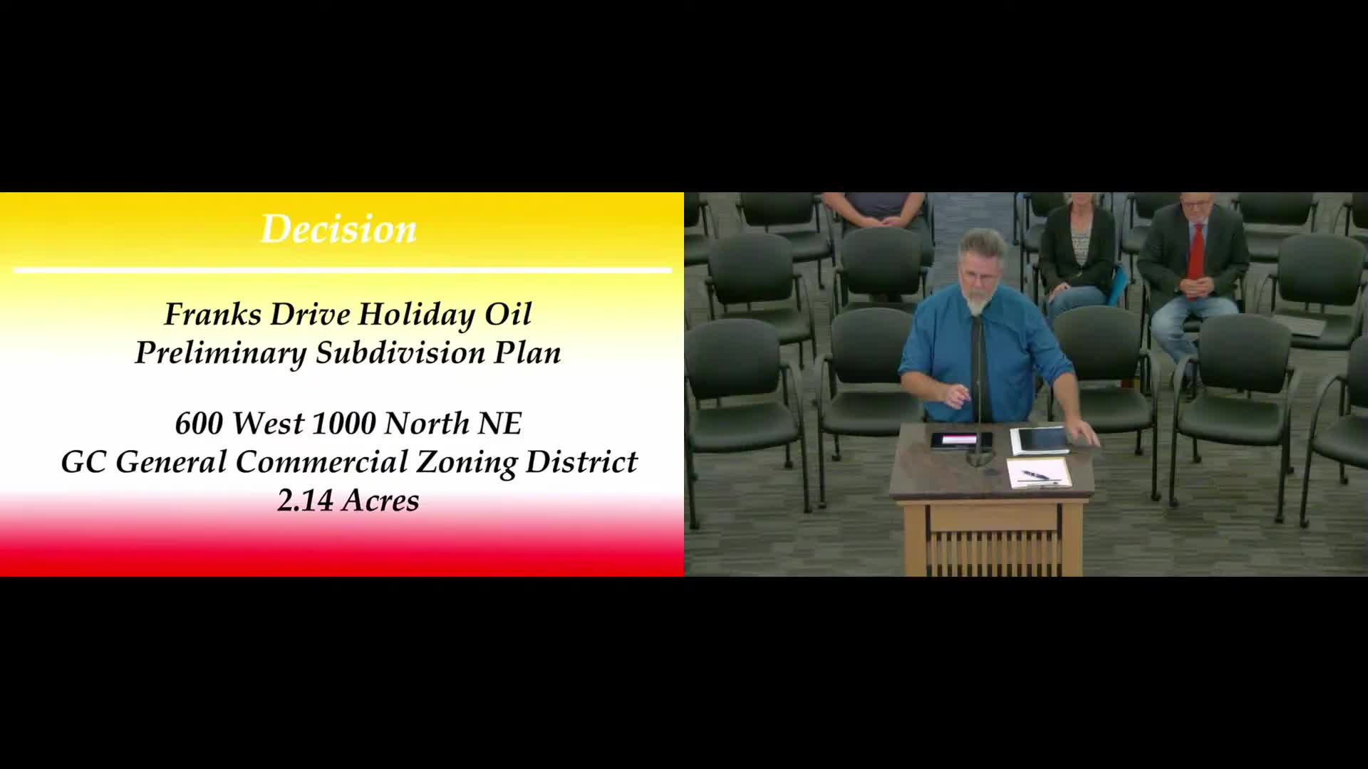 Planning Commission approves preliminary subdivision for Holiday Oil parcel at 600 W. & 1000 N.; road dedication to widen Frank's Drive required