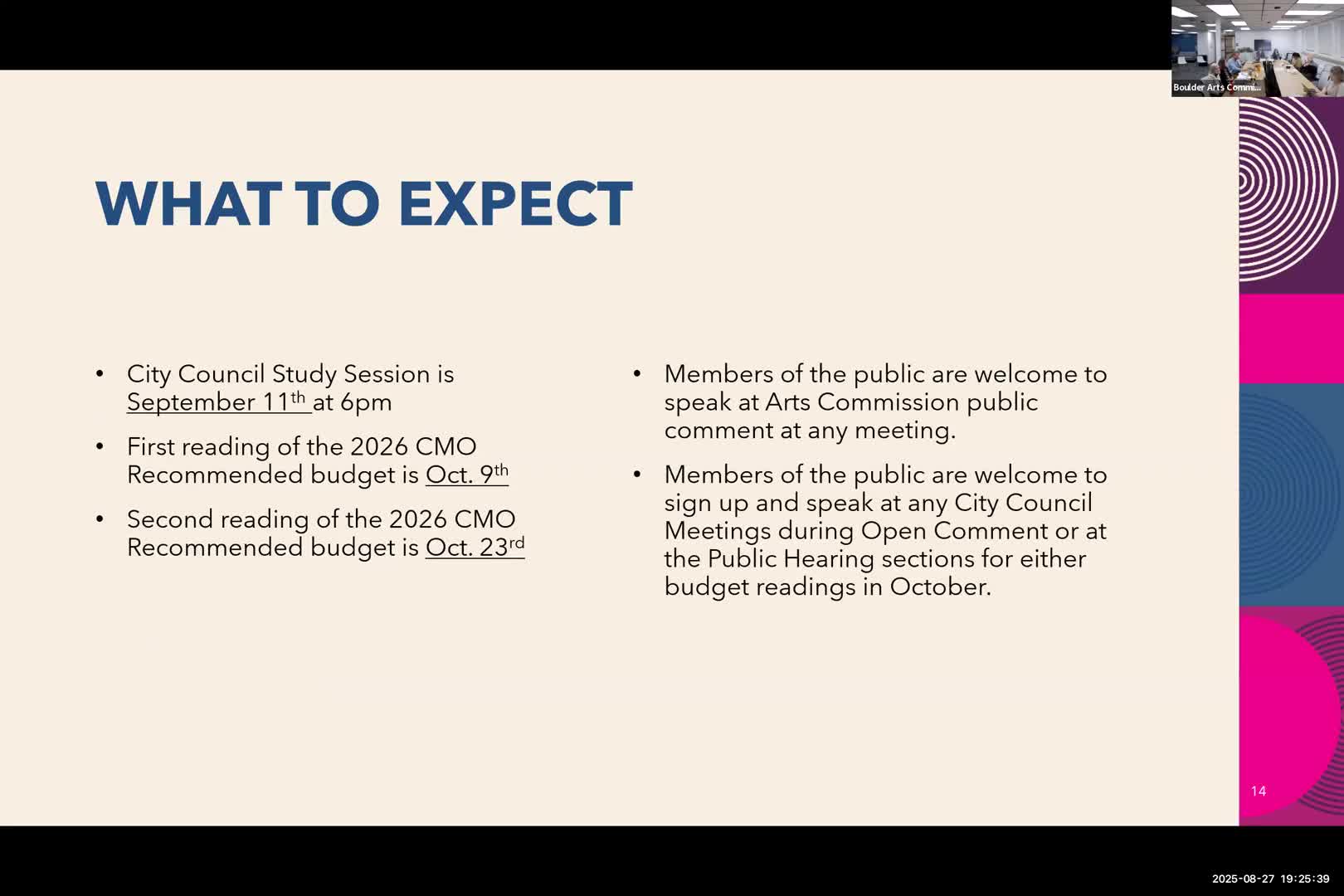 City staff previews 2026 budget release; arts commissioners given timeline and fund details