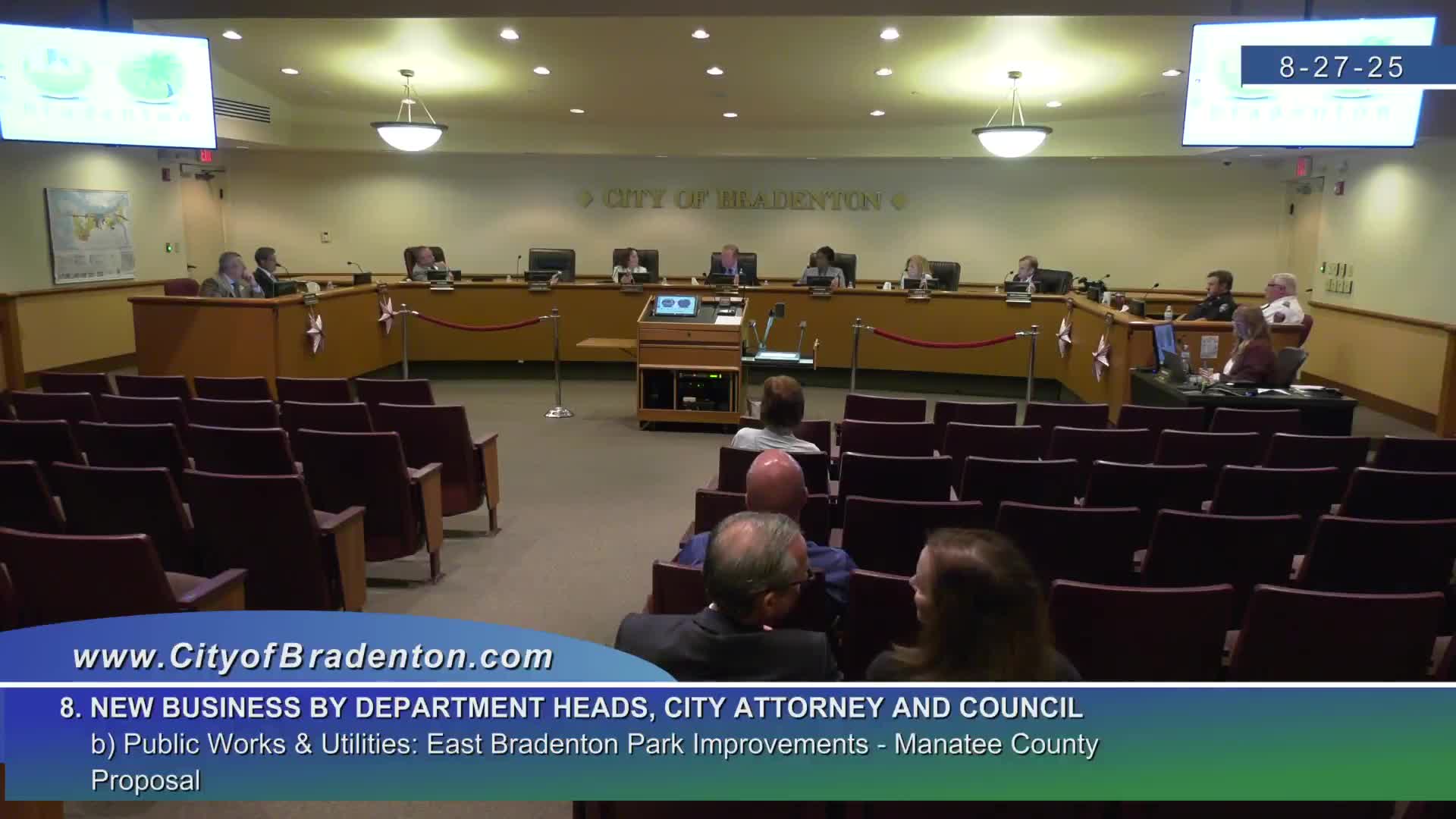 Council approves contract extension cap, race permit and solid‑waste plan; tables East Bradenton Park; staff reports major wastewater emergency purchases