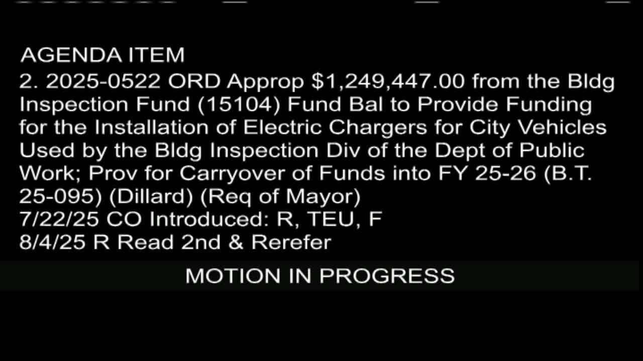 Committee approves $1,249,000 appropriation from Building Inspection Fund for EV charging stations