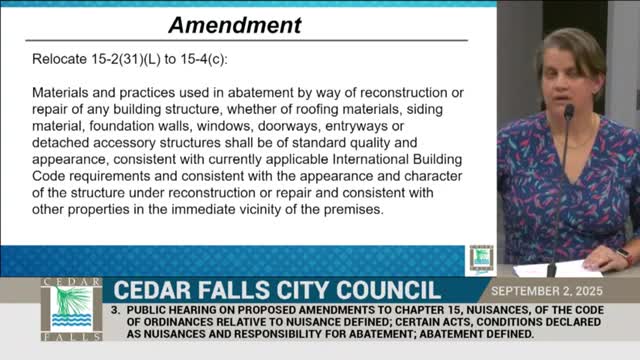 Cedar Falls council delays vote on Chapter 7 building-code changes after debate over ‘sleeping room’ definition and sump-pump language