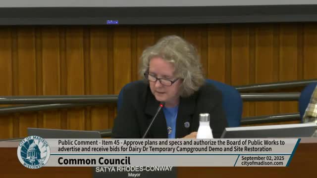Madison Council authorizes bids to dismantle Dairy Drive campground after weeks of debate; two‑week pause added to seek funding