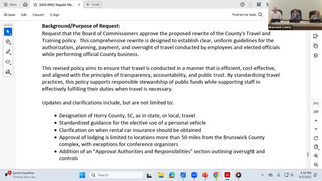 Commissioners approve consolidated travel policy; board sets alternative mileage reimbursement at half IRS rate